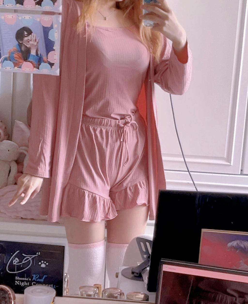 This charming 3-piece set includes a camisole, cardigan, and shorts, all made from soft, stretchy cotton fabric. Perfect for cozy at-home moments or relaxing times, it features a feminine design that creates a relaxed and effortless look.